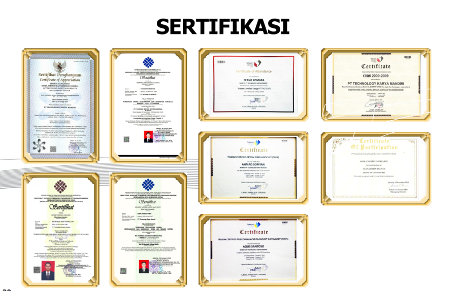 PT. TECHNOLOGY KARYA MANDIRI adalah perusahaan yang bergerak di bidang jasa instalasi dan penyediaan sarana pendukung untuk pembangunan infrastruktur jaringan telekomunikasi. Dengan berbagai langkah strategis yang telah dilakukan, perusahaan ini terus berkontribusi dalam industri telekomunikasi dan berkomitmen untuk maju ke depan. Pengalaman yang dimiliki digunakan sebagai pembelajaran untuk terus meningkatkan kualitas hasil kerja di masa mendatang.